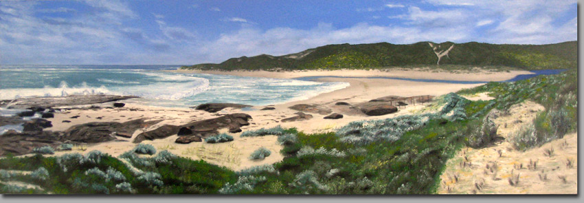 Rivermouth Beach, Margaret River, oil on canvas, 55cm x 165cm